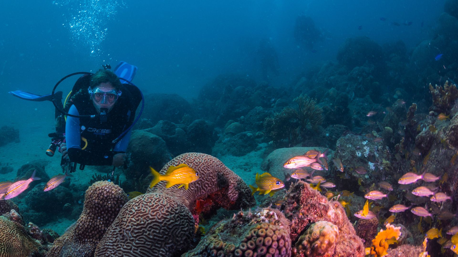 Las aguas cálidas del Caribe colombiano albergan una asombrosa diversidad de vida marina. En tus inmersiones, podrás encontrarte con coloridos corales, peces tropicales, rayas y, si tienes suerte, incluso tortugas marinas y tiburones de arrecife.