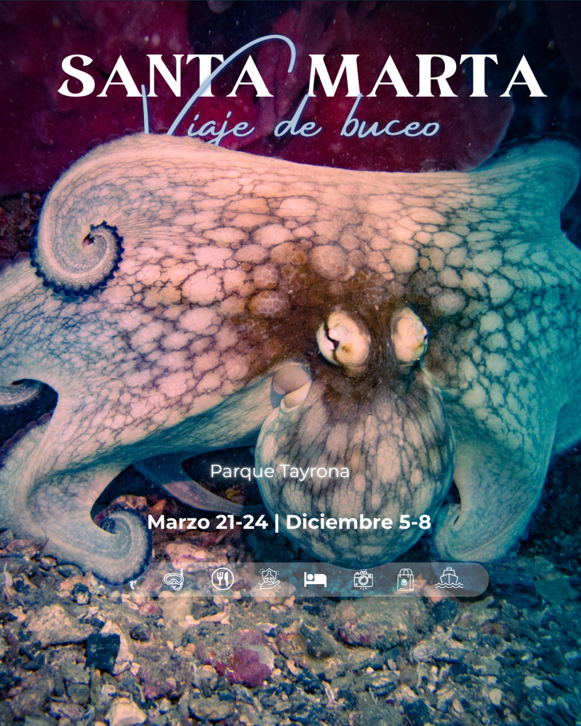 Esta zona es considerada una de las capitales del buceo en Colombia. Nuestra aventura inicia en los arrecifes de Taganga y desde allí nos desplazamos a lugares de buceo en las proximidades del Morro de Santa Marta, los arrecifes de Taganga y como es usual a los diferentes puntos de buceo del Parque Tayrona.