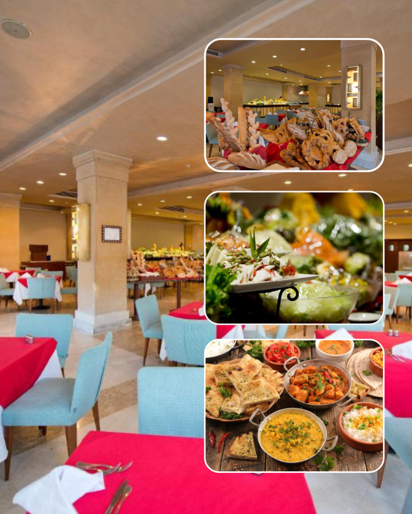 - Alimentación completa tipo buffet en hotel y barcos
